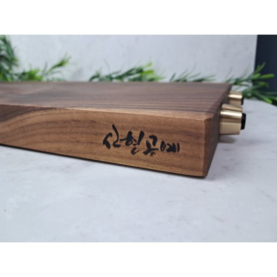 3대가 이어온 장인의 기술로 완성된 신현공예 월넛 사각도마는 세월이 빚은 깊은 색감과 단단한 내구성, 사선 디자인의 품격이 어우러진 수공예 명품입니다.